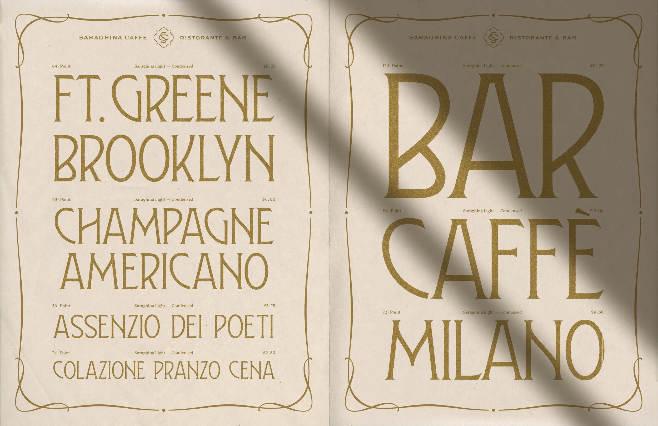 Within the art nouveau landscape, we looked to early 1900s illustrators like Alphonse Mucha and Secessionist artists such as Koloman Moser. The creative process was loose and adaptive. Furniture, stained glass, and sculpture from this era inspired the border treatments, meanwhile graphic, historical posters from some of the greats of their time informed the spirit of the custom, single-weight display typeface.